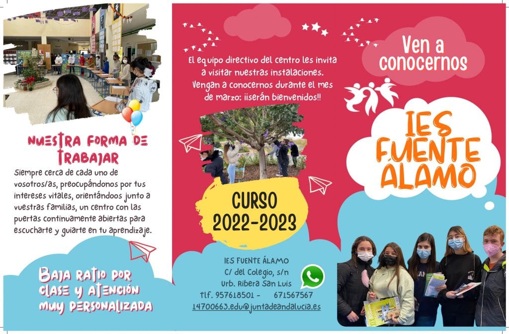 ¡Plazo de Matriculación curso 2022 abierto! En IES Fuente Álamo durante este mes de marzo tenemos abierto nuestro Plazo de Matriculación para el curso 2022-2023. Documentación para Matrículas y Anexos Los alumnos interesados deben presentar la solicitud entre el 1 y 31 de marzo. En tanto a la documentación necesaria a presentar se encuentra: 1- [...]